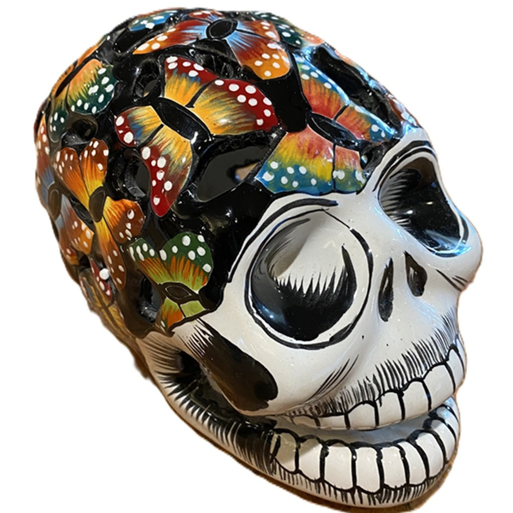 Day of the dead Craneo Skull Sculpture with Mariposas/Butterflies